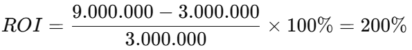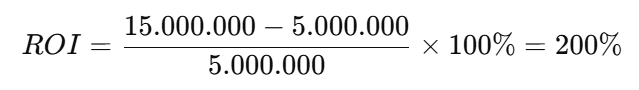 Jika Anda mengeluarkan Rp5.000.000 untuk iklan Facebook Ads dan mendapatkan pendapatan Rp15.000.000 dari hasil iklan tersebut, maka: